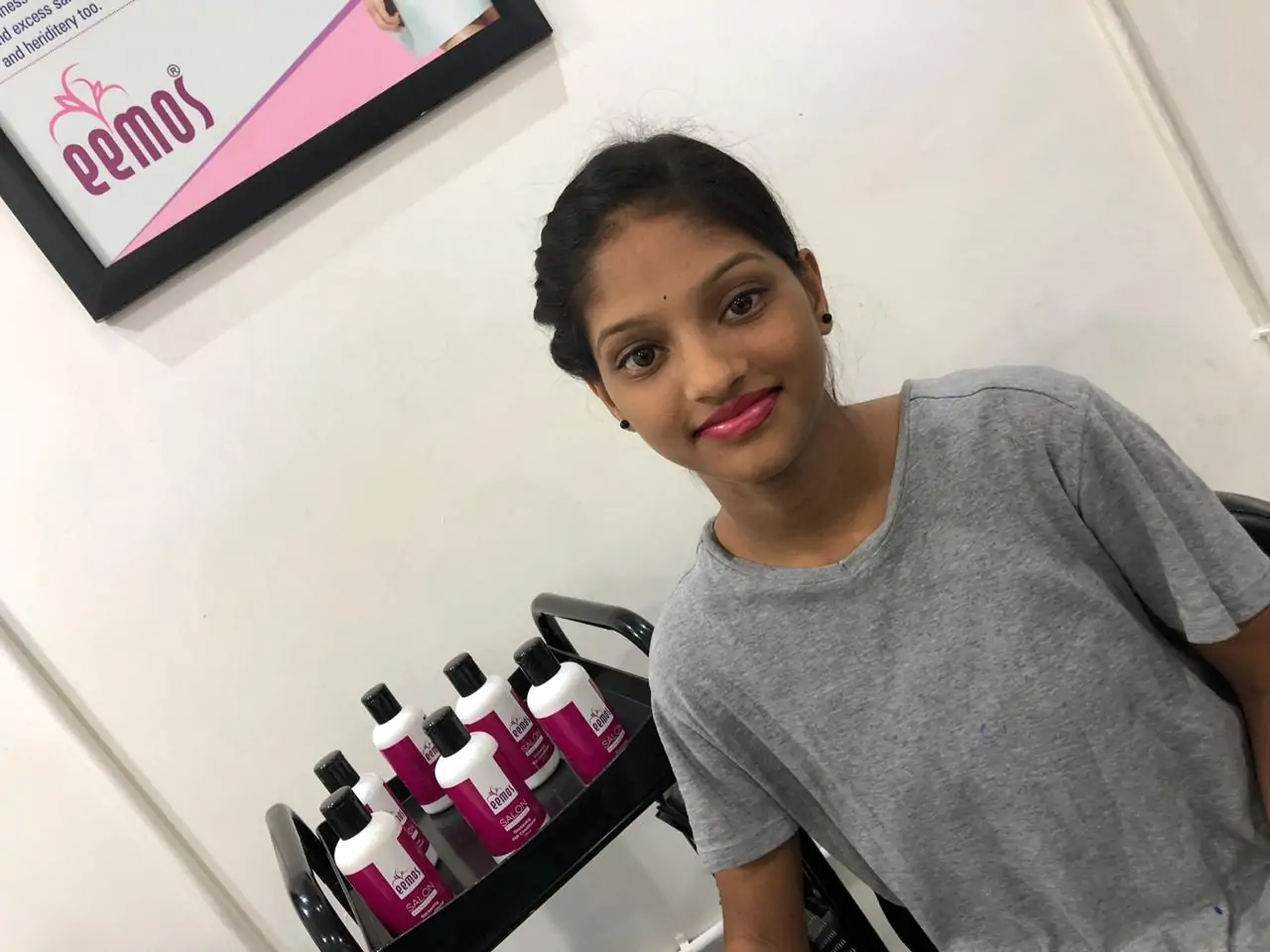 She is not the kind of girl who settles for less. She always wanted to be someone who made a difference. She was interested in facial services and making others beautiful. So, she decided to take up beauty as a career. She was surprised to find a lot of career opportunities in the beauty industry. Through her friends’ circle, she came to know about Eemos, seen their reviews and success stories on their website. That’s how she worked her way to Eemos Beauty Academy in Tirupati, to learn beauty parlor services. Despite the issues and struggles that she faced to learn and family tensions, she always progressed without losing confidence. Finally, she completed the course successfully.